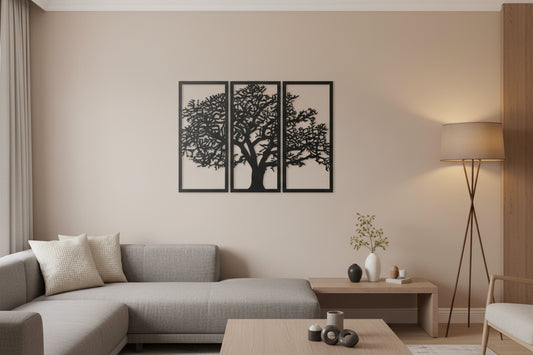 3-Panel Tree Wall Decor Engraved MDF Wooden Wall Art for Saudi Homes 91.4 x 61 cm