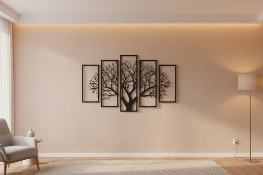 Five Frames Tree 3D Wall Art Decor Wooden MDF Modern Home Decoration for Saudi Homes