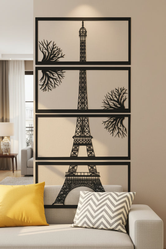 Eiffel Tower Wall Decor 122 x 86 cm 4‑Piece Black Wooden Art for Home and Office