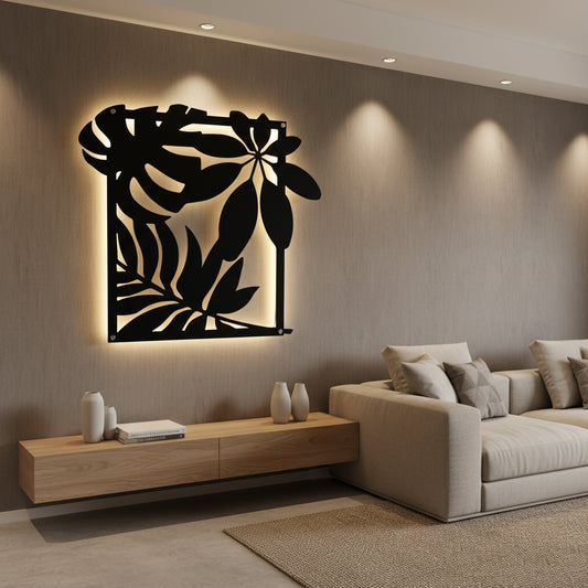 3D Jungle Leaves Wall Decor with LED Neon Light 32x16 Inches MDF Art | Islamic Gifts Shop Saudi Arabia